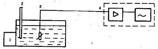 1:溫度控制儀、2:玻璃棒溫度計、3:溫度傳感器、4:數(shù)字電壓表(測量放大、自動顯示