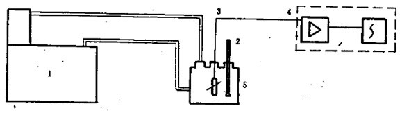 1:恒溫水槽、2:玻璃棒溫度計、3:溫度傳感器、4:數(shù)字電壓表(測量放大、自動顯示)、5:循環(huán)杯 將測試得出的溫度按下式進行計算: △T=±(Tmax-Tmin)/2 式中:△T→溫度波動度℃; Tmax→最高溫度值℃; Tmin→最低溫度值℃。